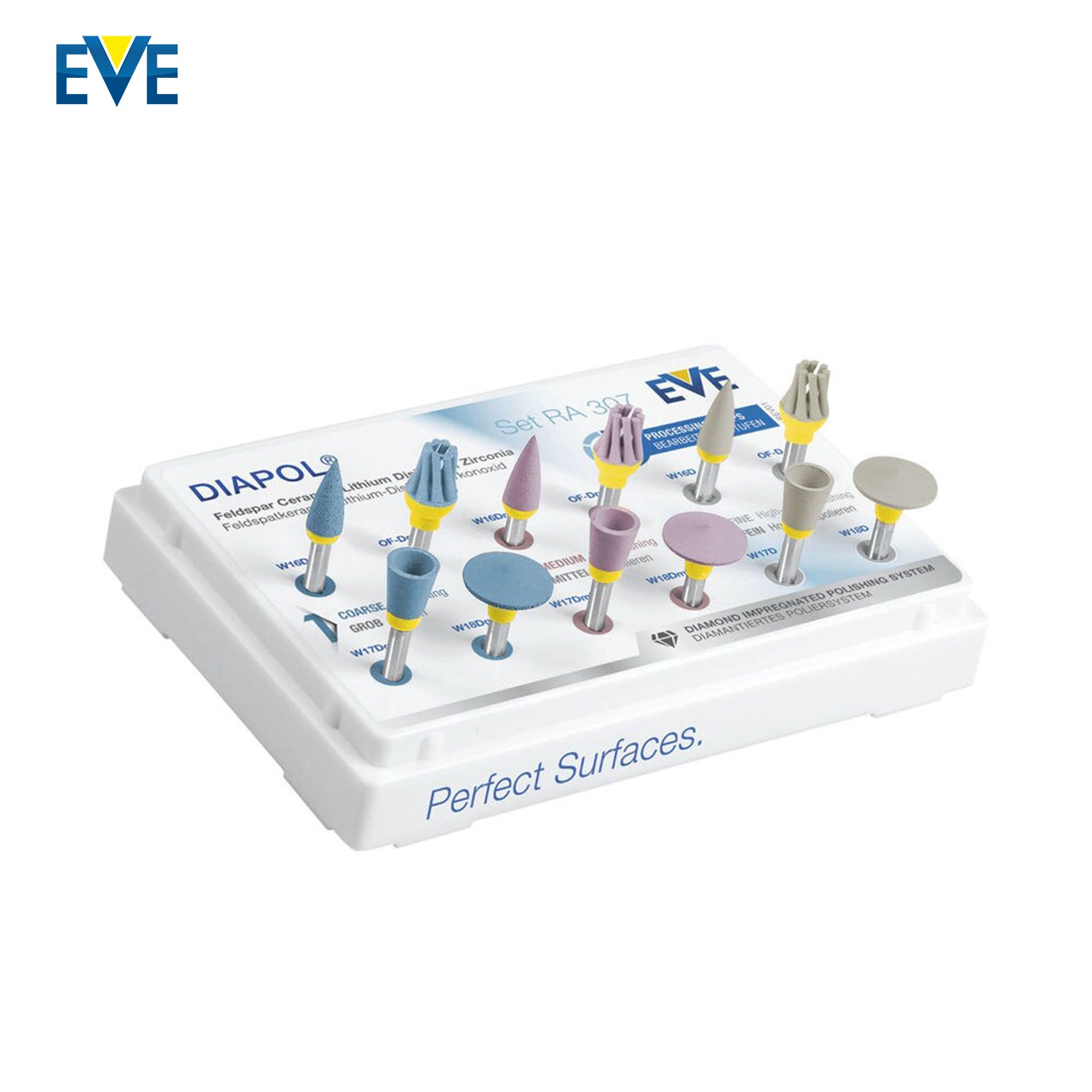 Gray: Stage 3 - Polishing Eva Diapol can be used on all ceramic surfaces.