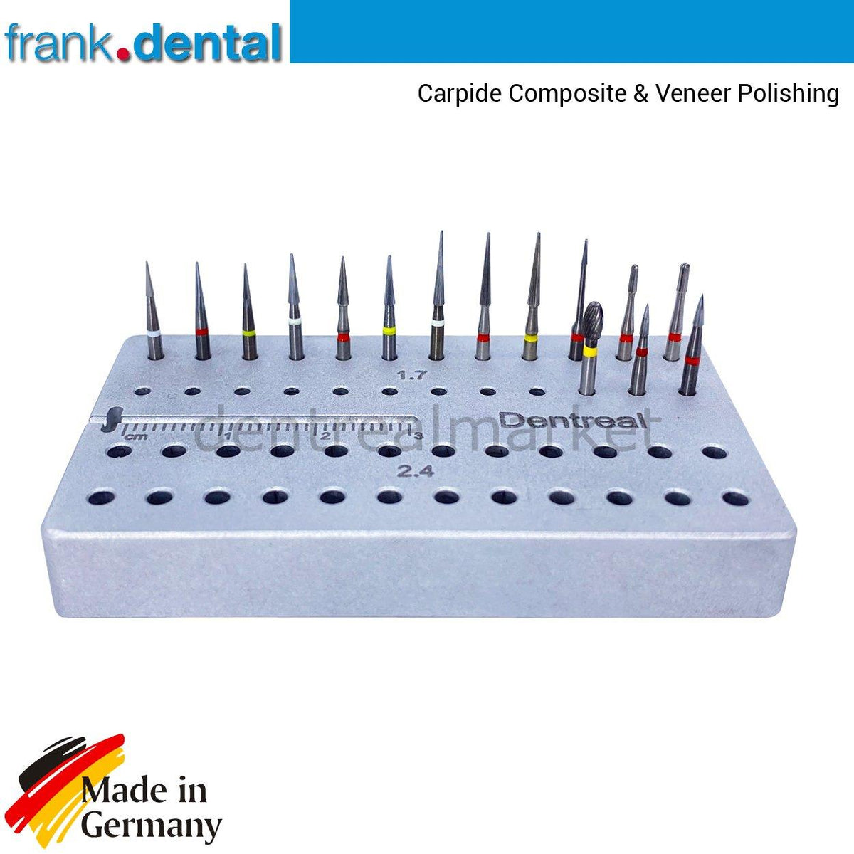 Burs with tungsten blades will remove most surface lines and are recommended for use before abrasive polishing tools. These tools are designed to reduce the "glossy mat" phenomenon and save additional polishing time. Frank dental carpide composite grinding and polishing burs for final surface finishing and satin polishing is ideal.