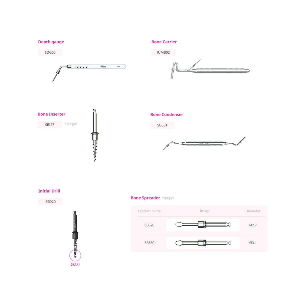 • Enables high-speed drilling within the range of 800~1,200 RPM, without damaging the sinus membrane.
