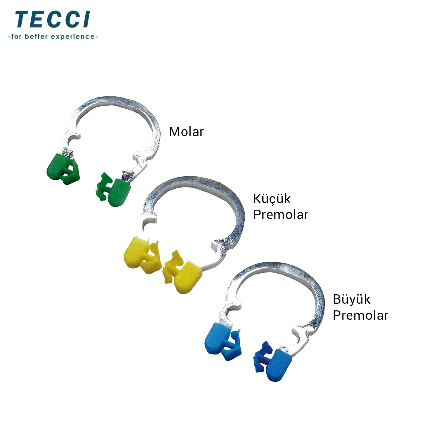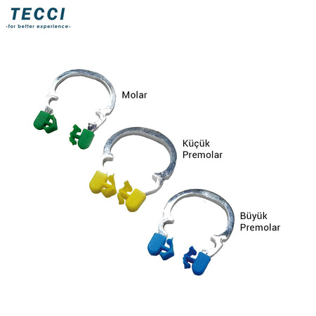 The separating ability of rings is higher than clips, as their form-based tension provides greater force. Additionally, they define a wider working area. The tips are specially designed with an inclined shape that mimics the natural contour of the tooth and include a space for proper wedge placement.