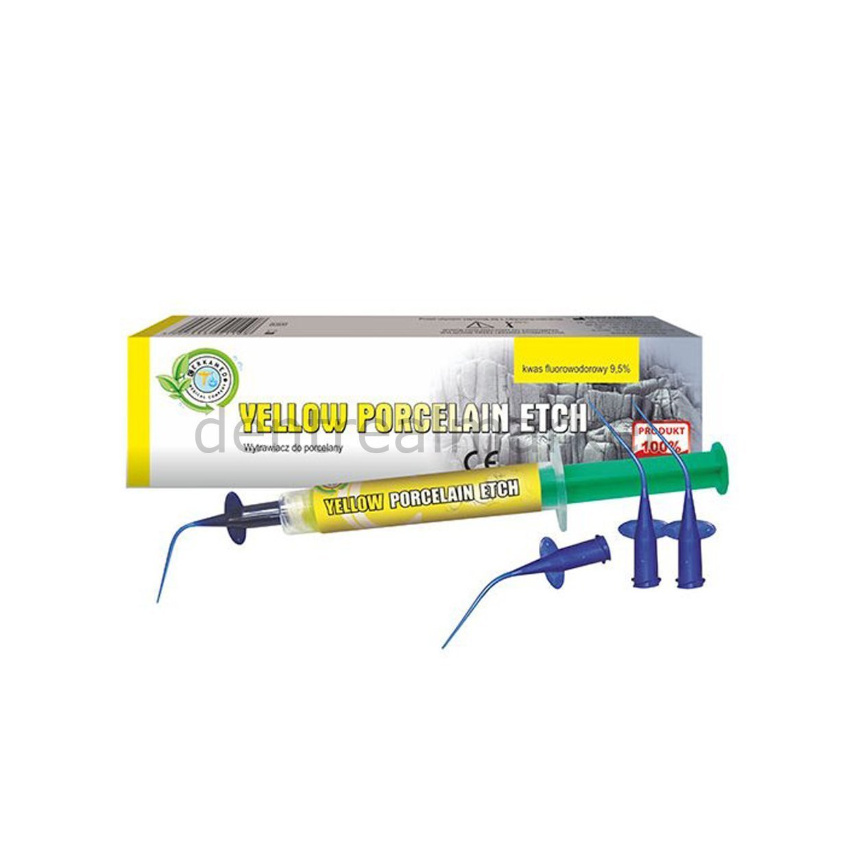 YELLOW PORCELAIN ETCH wird zum Ätzen von Porzellan während der Reparatur von Zahnprothesen sowie zum Ätzen von Porzellanfahnen, Kronen und Inlays vor deren Zementierung verwendet.