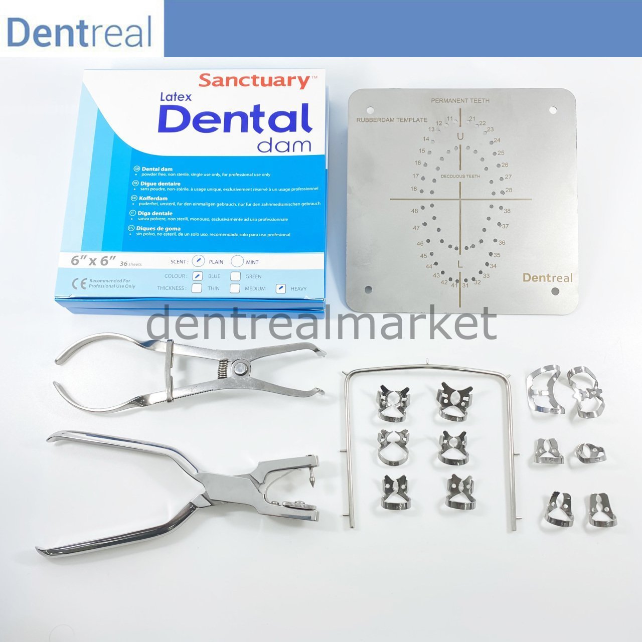 Kofferdam-Klemmen- und Werkzeug-Set + Kofferdam-Schablone + Kofferdam-Reifen