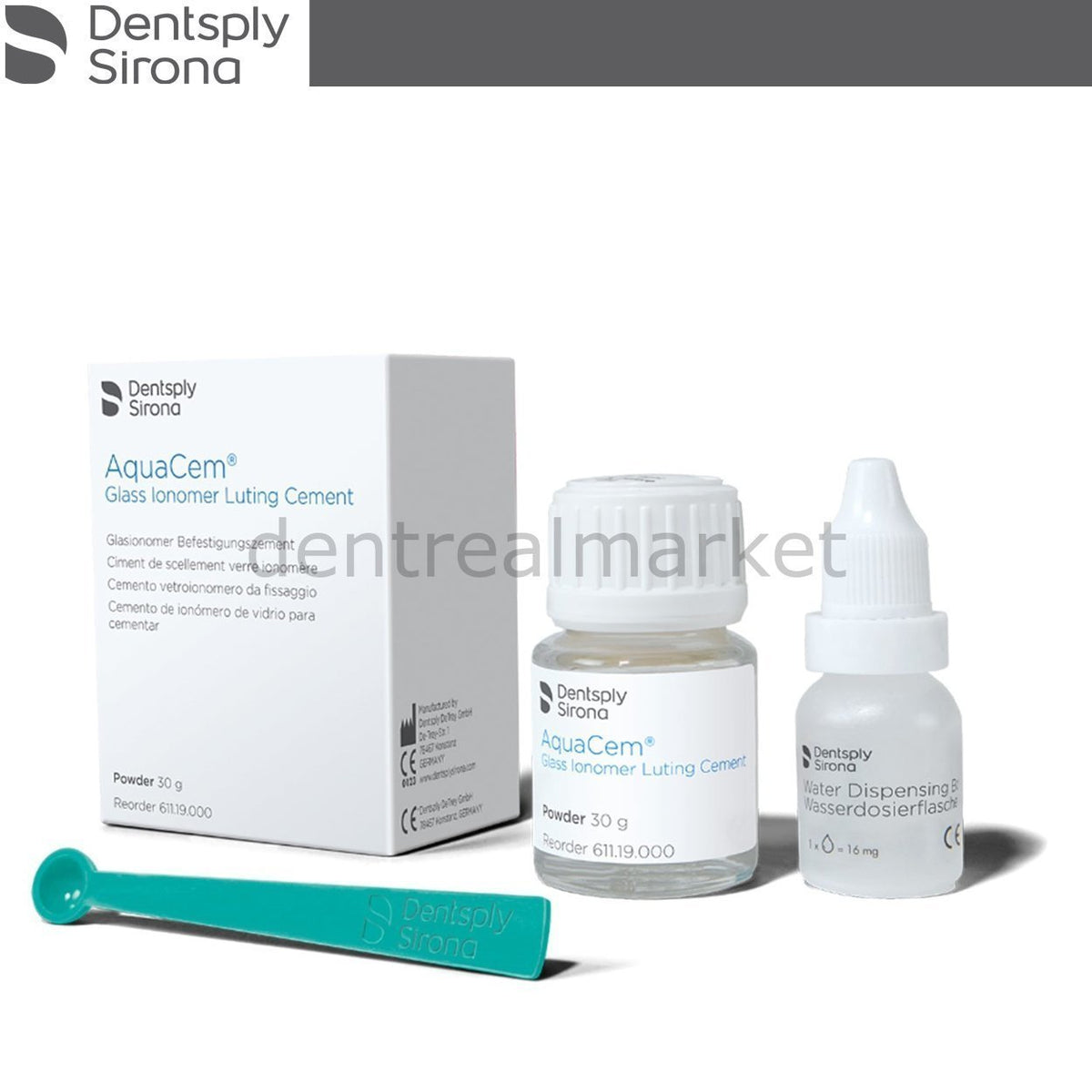 AquaCem ist ein hellgelbes, durchscheinendes Glas-Ionomer-Befestigungsmaterial, das aus einer Mischung von Aluminiumsilikatglas und Polyacrylsäure besteht.