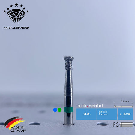 Diamant-Zahnbohrer: Diamant ist das härteste natürliche Material, das der Mensch kennt, und daher das Material der Wahl, wenn es darum geht, das härteste Gewebe im menschlichen Körper abzunutzen: den Zahnschmelz. Diamantbohrer haben einen Stahlschaft und einen aktiven Teil, der mit natürlichem oder synthetischem Diamantpulver beschichtet ist. Die überwiegende Mehrheit der im Handel erhältlichen Zahnbohrer besteht aus synthetischem Diamant. Bohrer aus natürlichem Diamant sind seltener anzutreffen. Hersteller, die Naturdiamanten verwenden, betonen in der Regel diese Eigenschaft, da sie den Bohrern eine höhere Qualität, Effizienz und Haltbarkeit verleiht. Natürlich sind die Kosten für einen Fräser aus natürlichem Diamant höher als der für einen Fräser aus synthetischem Diamant.