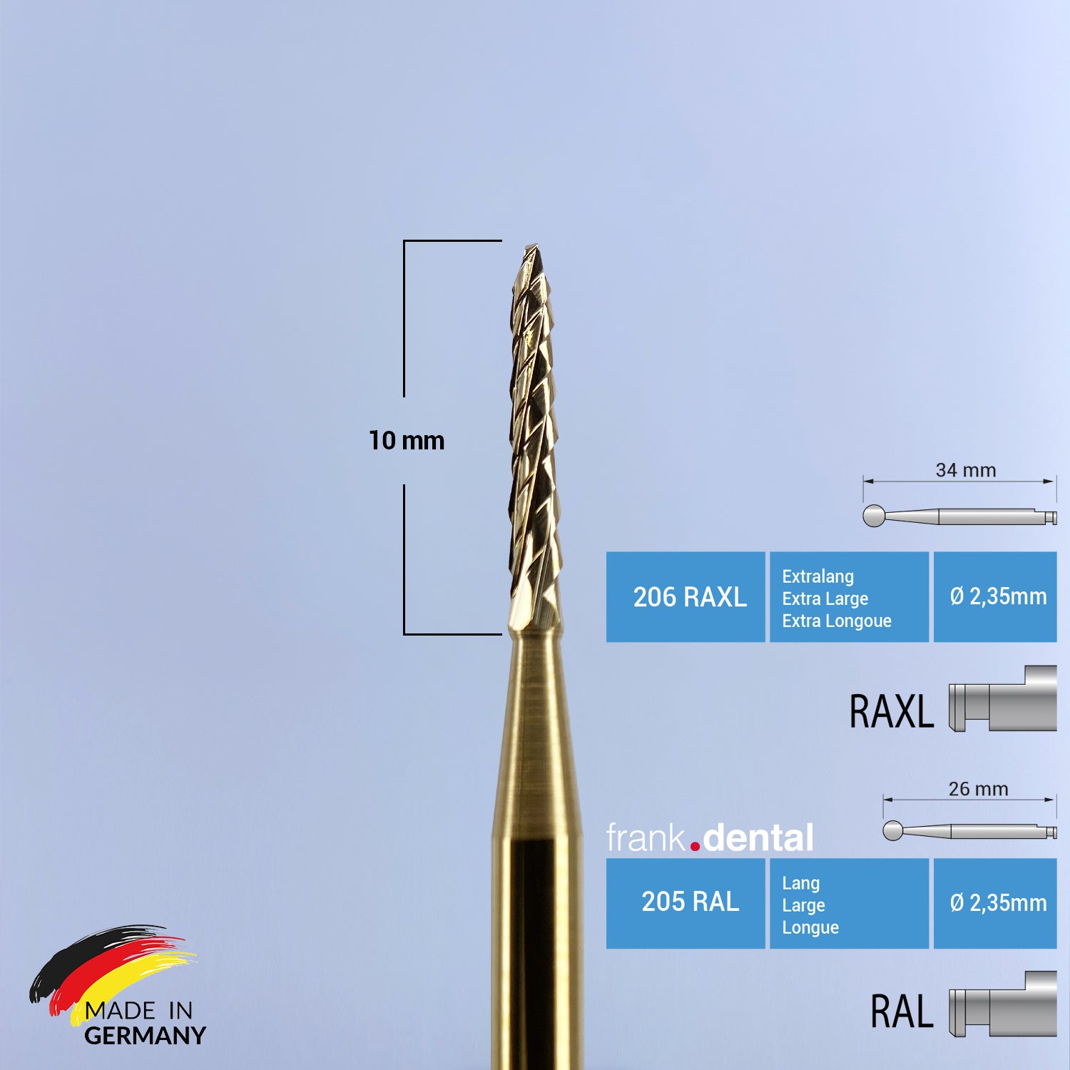 Titanbeschichteter Hartmetall-Chirurgiebohrer - Lindemann-Knochenschneider - 162A RAL und 162A RAXL - für Winkelstück