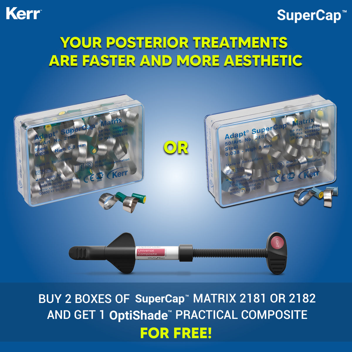 Die einzigartig dünnen Ringmatrizen von Adapt SuperCap sind vormontiert auf SuperCap, dem Spannungszusatz zum SuperMat-System.