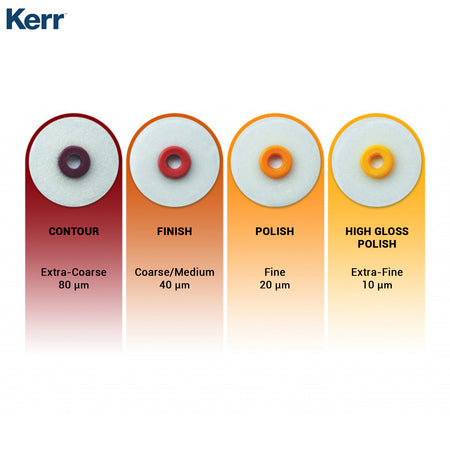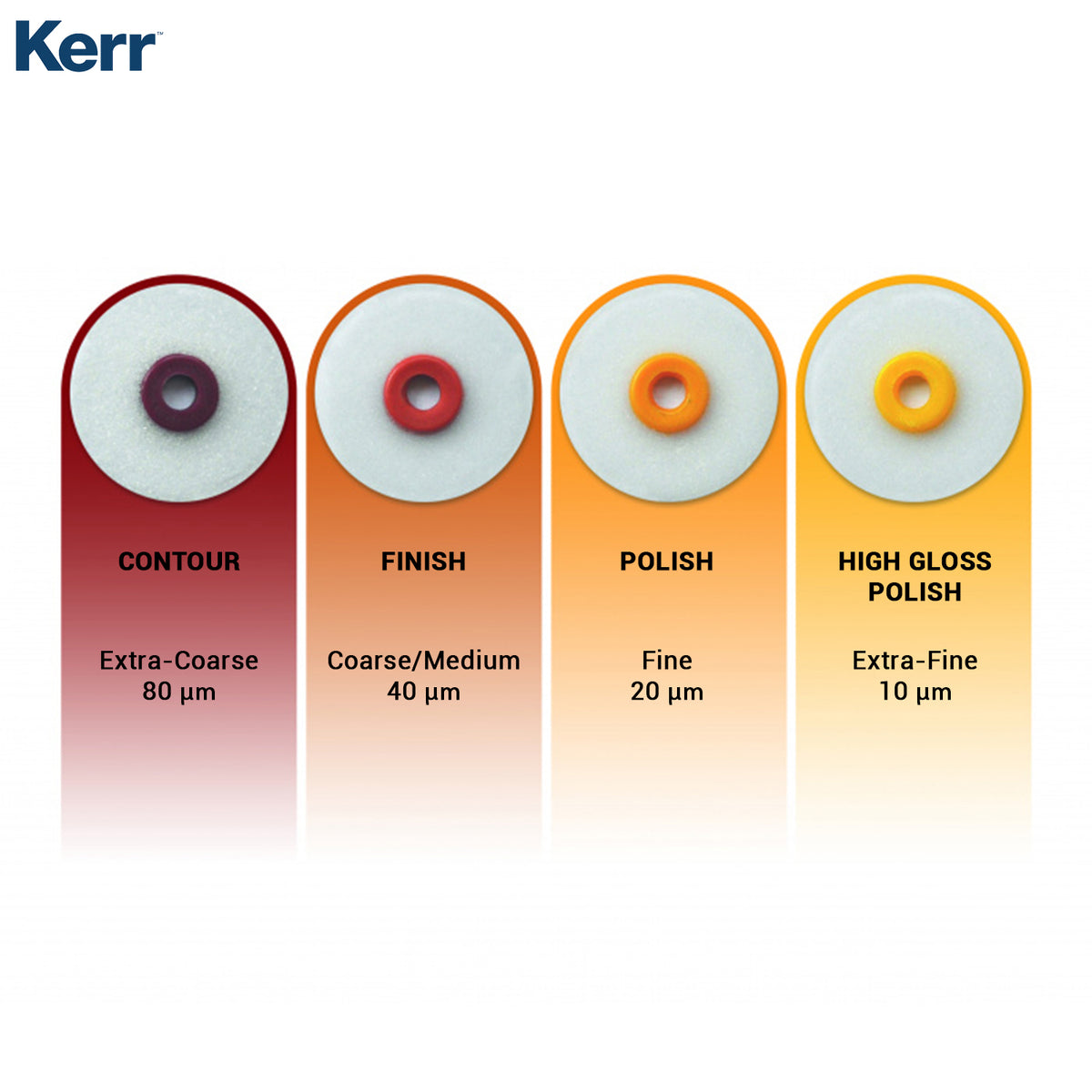 4-Körner-System zum Konturieren, Finishen, Polieren und Hochglanzpolieren. Für Komposite, Glasionomere, Amalgame, Halb- und Edelmetalle.